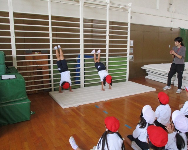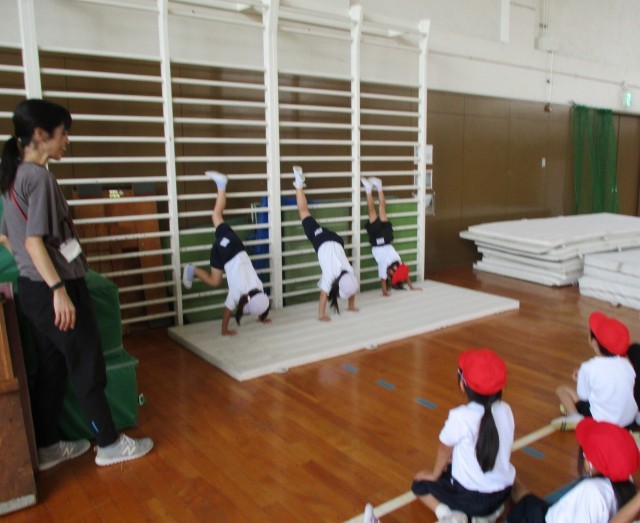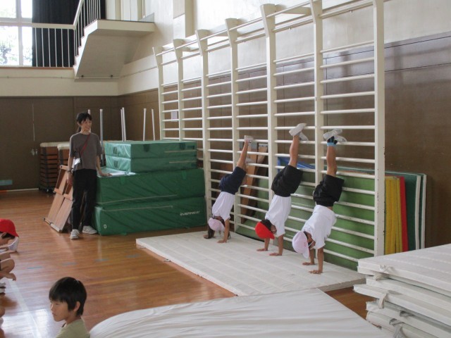 ろくぼくに足をかけてしっかりと腕で体を支え、5秒数えます。