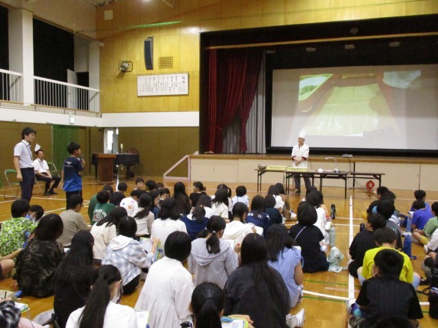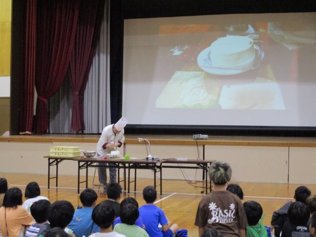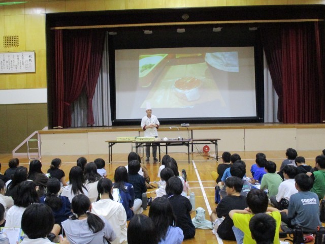 洋菓子店「ラ・カンパーニュ」から講師に来ていただき、洋菓子作りの仕事についてお話を伺いました。