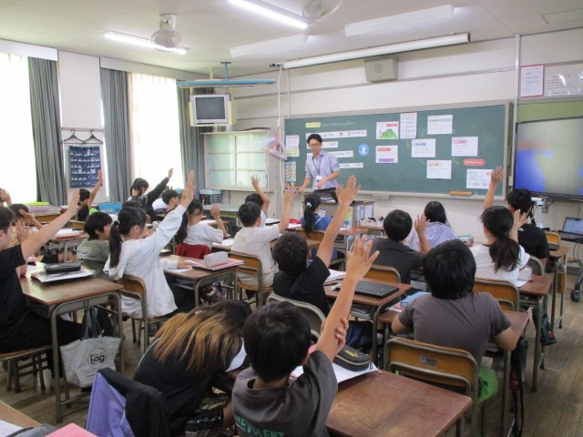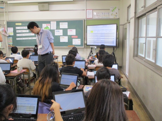 想定した施設の場所について簡単な説明ができるように関連する単語などをタブレットを活用して調べました。