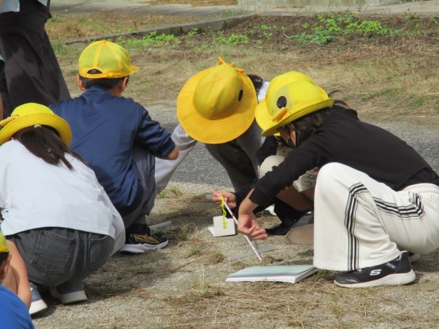 温度計を上手に地面に差し込んで、正しく計測できるようがんばっていました。