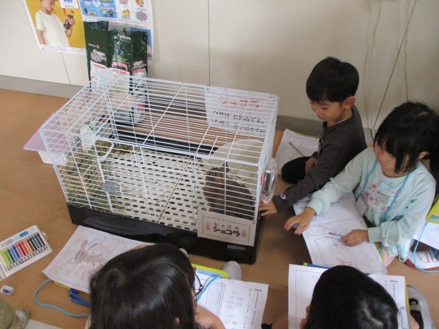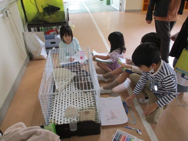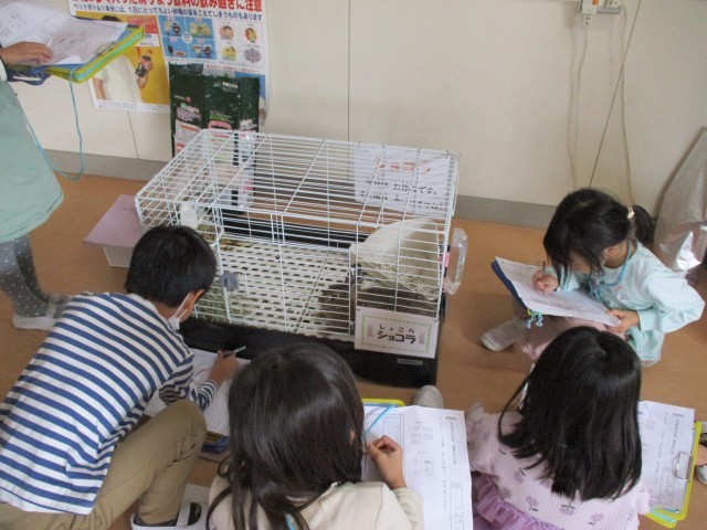 学校で飼育しているモルモットとウサギの様子をじっくり観察して、気づいたことを文章に書きます。