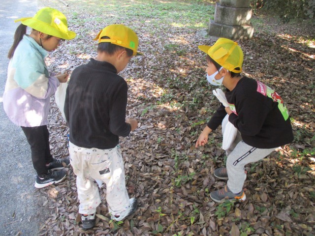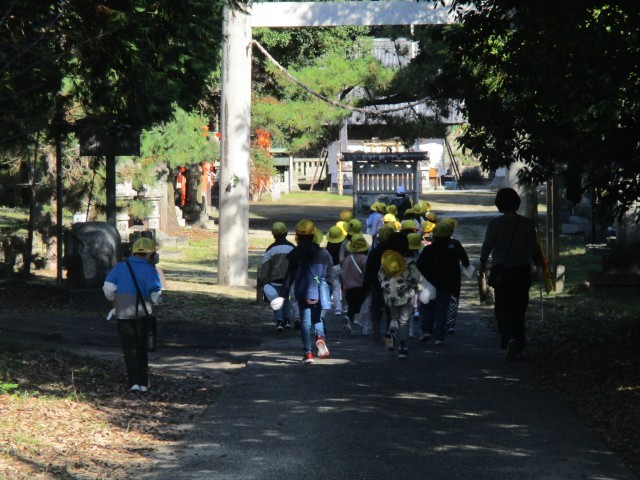 秋晴れの気持ちの良い日、生活科の「あきみつけ」で宇夫須奈神社へ行ってきました。
