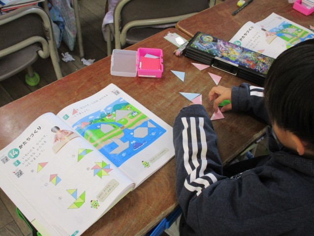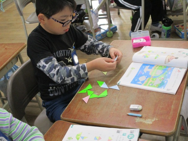 色板が何枚いるのかを考えながら、楽しい形を熱心に作ることができました。