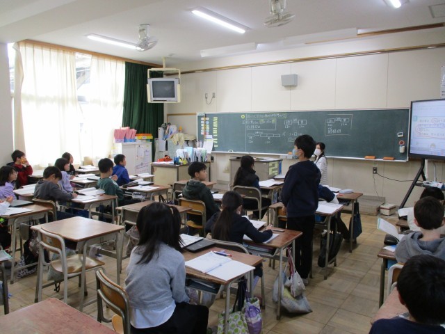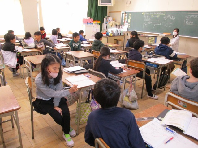 問題をよく読んで図に表して、みんなで話し合って答えの求め方を見つけました。