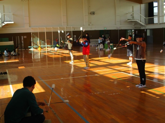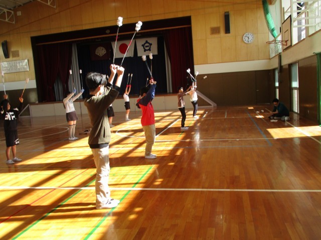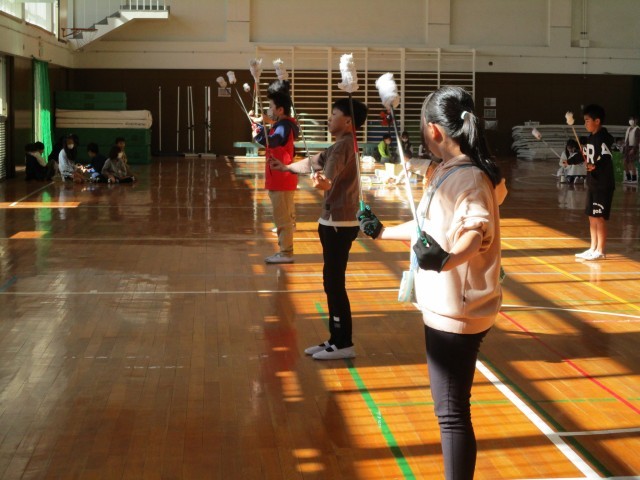 5年生は野外教育活動のキャンプファイヤーでトーチを使ってトワリングを行います。