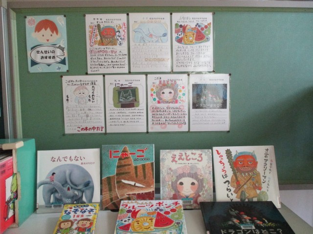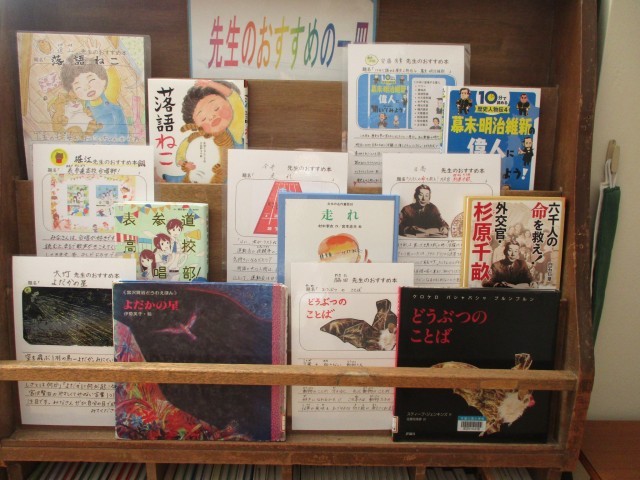 図書館の本の紹介コーナーに、「先生おすすめの本」が置いてあります。