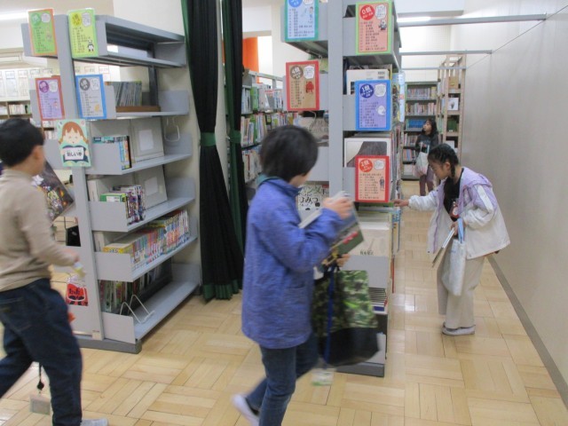 友だちと話し合いながら、お気に入りの本を楽しそうに探していました。