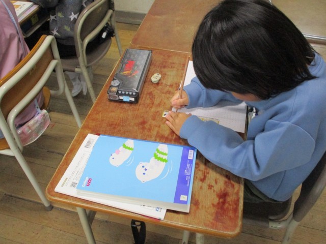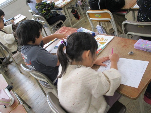 定規を使って点と点をきちんとつないで上手に三角形、四角形を作ることができました。