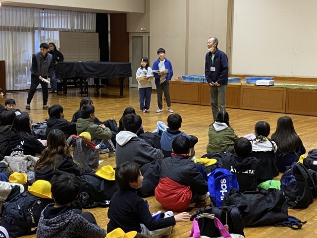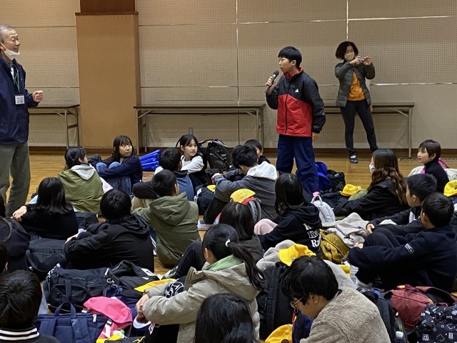 無事に到着をし、入所式を行いました。施設の方のお話を聞きました。児童代表の言葉では協力することと切り替えをすることを意識したいという話がありました。