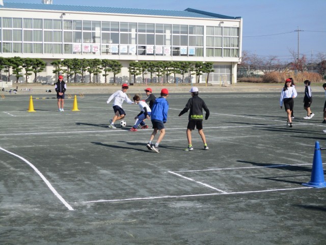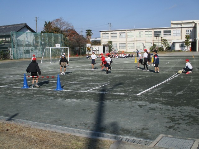 チームで協力してボールを回しながら、ゴールをねらいました。
