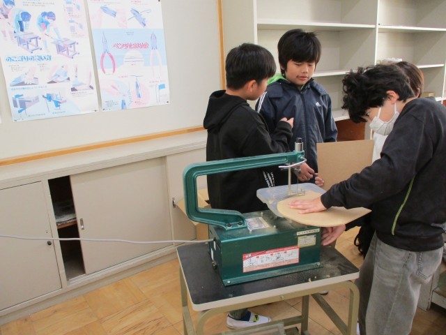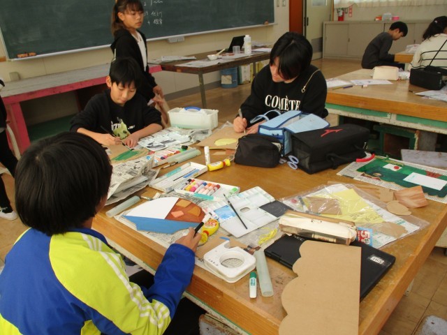 電動のこぎりを使ってていねいに切り抜いた板にきれいに色を塗って仕上げます。