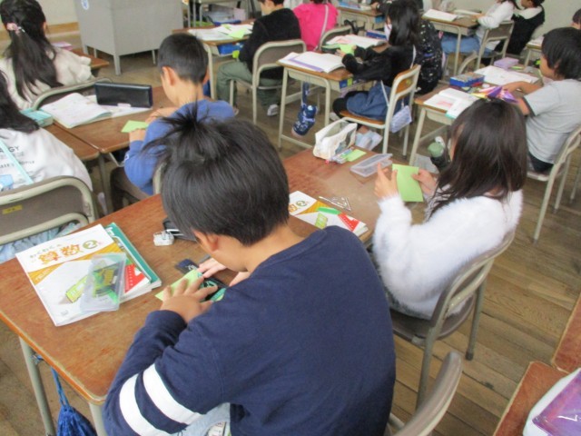 長方形の紙を折って切るとどんな四角形ができるのか調べました。
