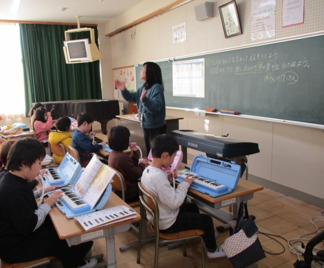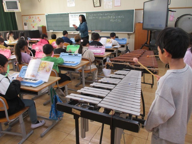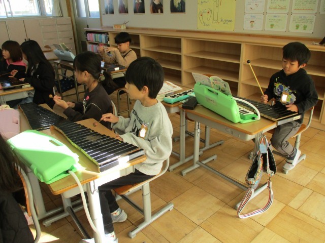 鍵盤ハーモニカ、木琴、鉄琴などを交代しながらみんなで楽しく合奏することができました。