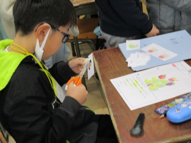 自分が作ってみたいフルーツパフェのイメージを、英単語のおさらいをしながら作りました。