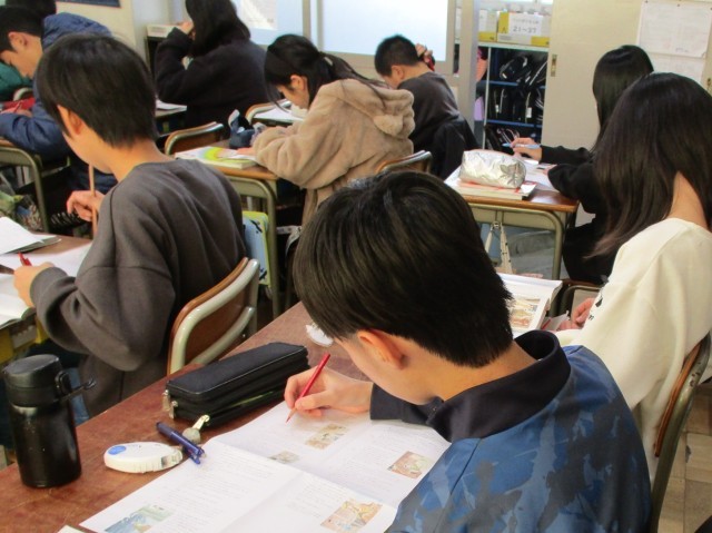 どの子もよく集中して文章を読み、赤い線を引く作業に取り組んでいました。