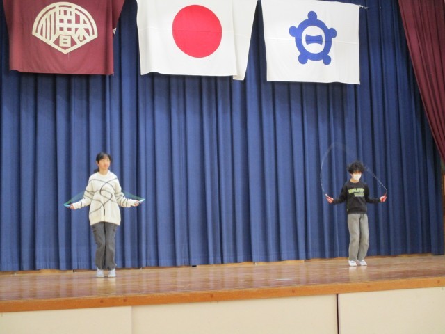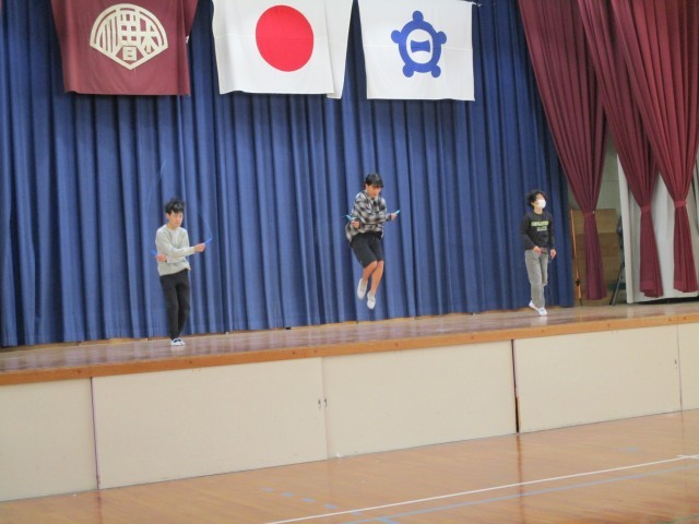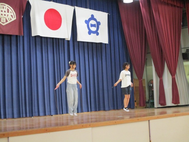 各学級では、跳び方の紹介が終わるたび、がんばった運動委員に向けて拍手が送られていました。
