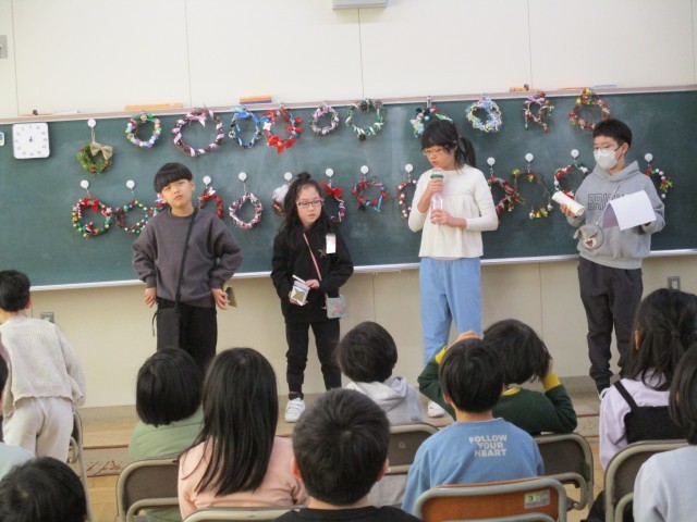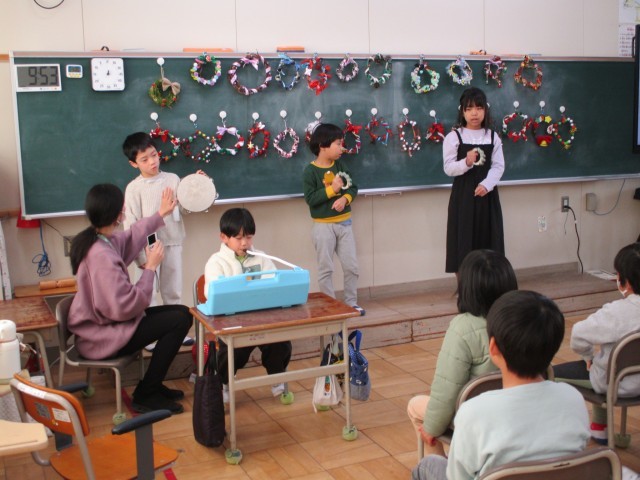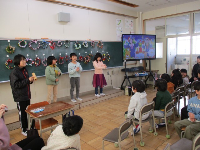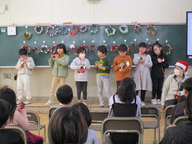 先生方をお客さんに招待して、歌や合奏などで楽しいクリスマス会を行うことができました。