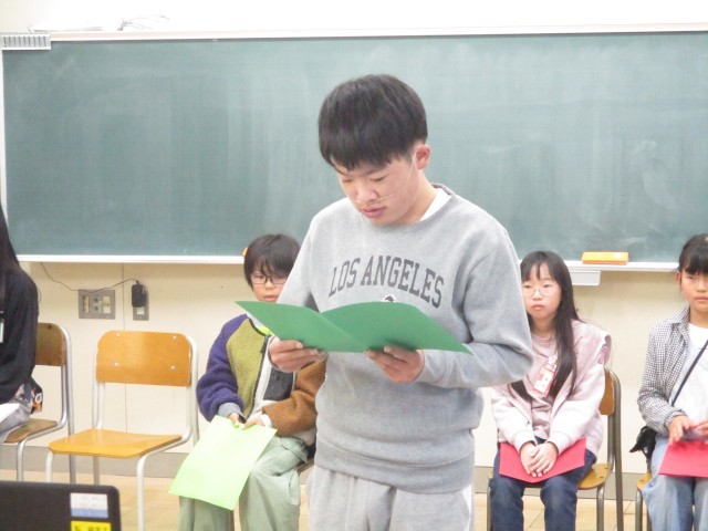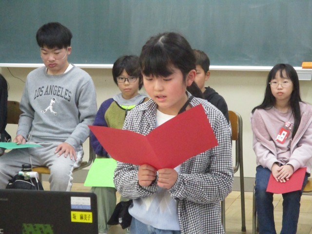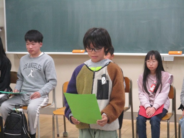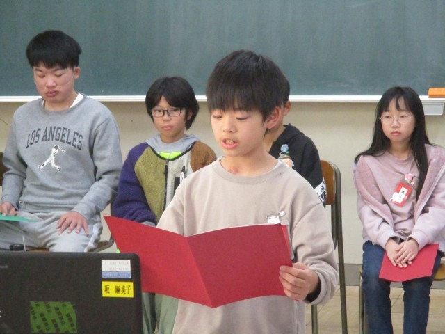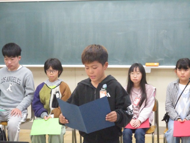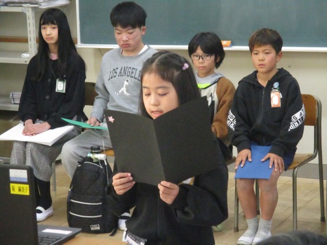 各学年3組・4組となかよしの代表の児童が、2学期にがんばったことをみんなの前で発表しました。