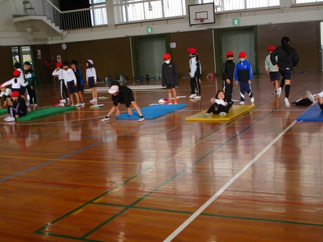 マット運動に取り組んでいます。