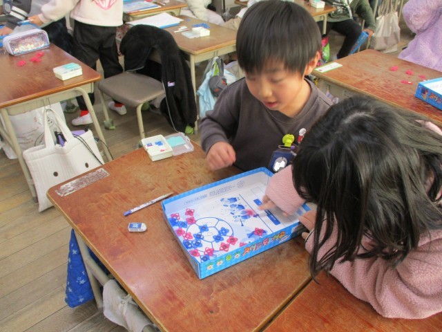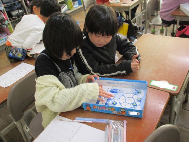 友だちと一緒に楽しくおはじき入れをしながら学習することができました。