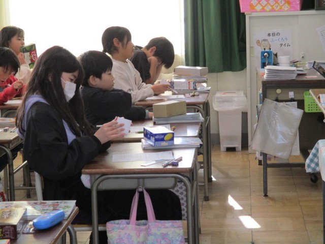 直方体の箱や自分で作った立方体を利用しながら、それぞれの辺と面がどのような関係になっているのか、熱心に調べることができました。