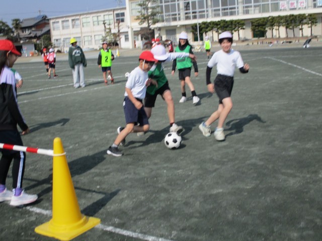 サッカーのゲームを行いました。