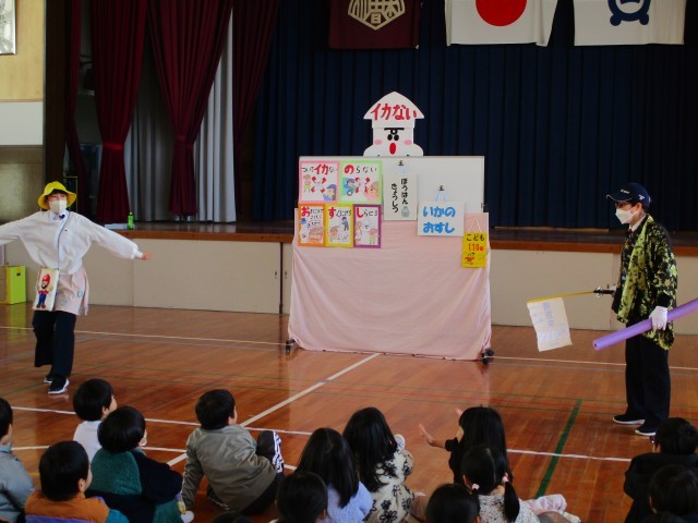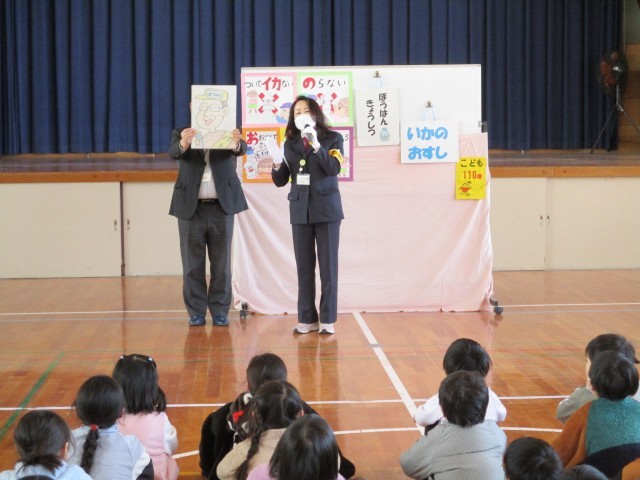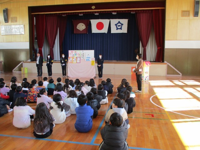 今日行われた1年生の防犯教室の様子です。
