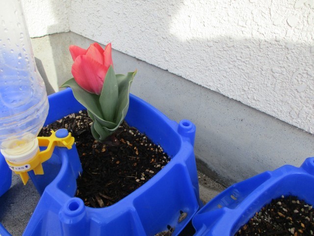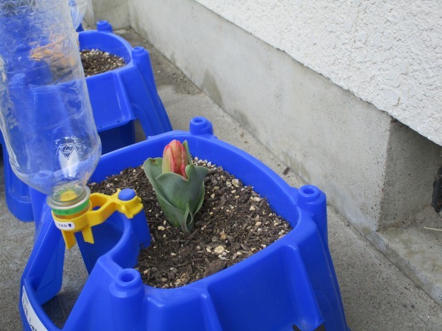 1年生が大切に育てているチューリップがずいぶん大きくなりました。