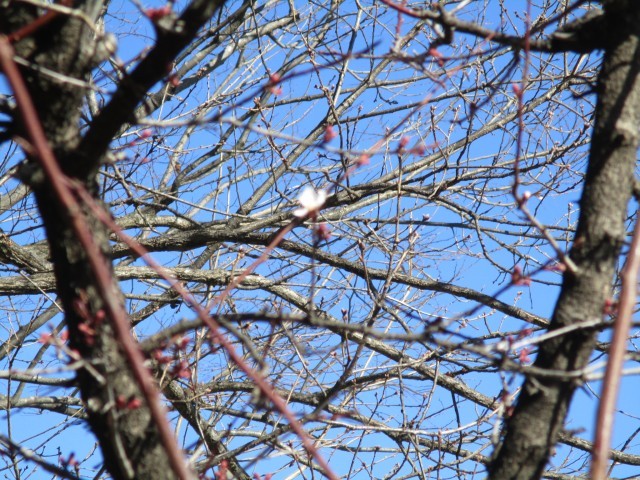 ピンクのつぼみが枝いっぱいにつき、華憐な白い花がちらほらですが咲き始めました。