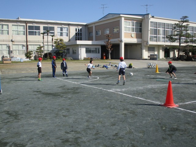 ボールをよく見てけったり、ボールのゆくえをしっかりと見て走ったり、みんなでいきいきとゲームを行うことができました。