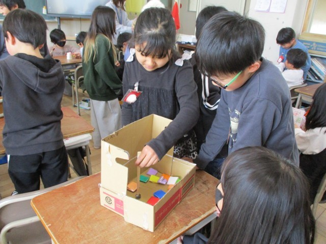 よく考えて作ったおもちゃをみんなに披露し、工夫したところなどを説明しながら遊びました。