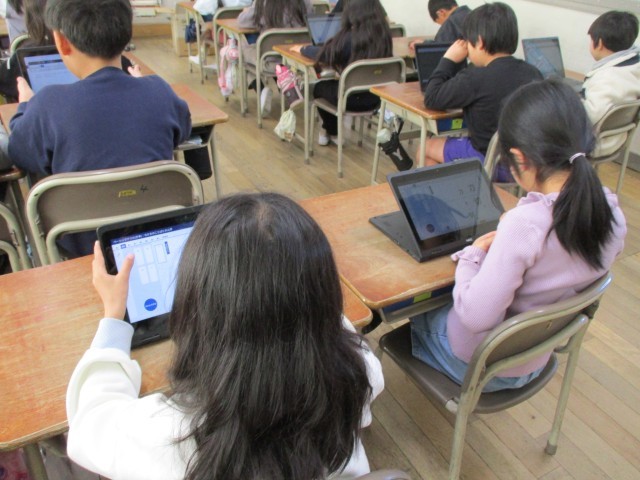 上手にタブレットを操作して、いろいろな問題に答えます。