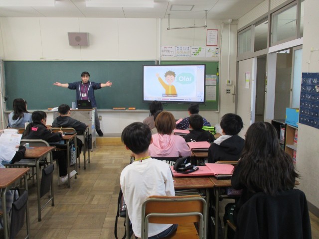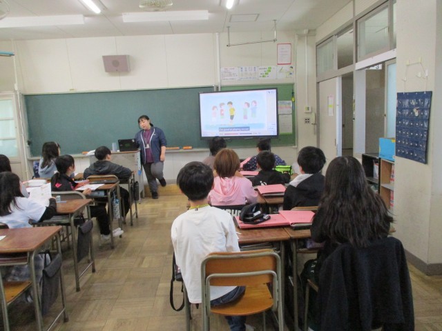 6年生での英語授業の進め方についての説明の後、英語の歌を歌いながら自己紹介をする練習を行いました。