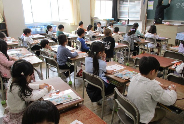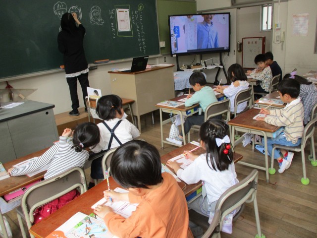 1年生の書写授業の様子です。