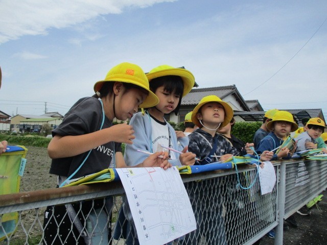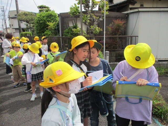 木曽川西小学校の東方向と南方向に分かれて、街並みの観察をしました。