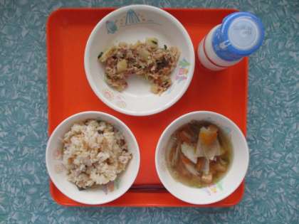 5・9 今日の給食 公開日 2022/05/09 更新日 2022/05/09 食育・給食 たけのこご飯・牛乳・けんちん汁 新じゃがいもの和風サラダ 食べ物には、一番おいしくて栄養たっぷりな時期があり、その時期のことを「旬」と呼びます。今日の給食は、「旬を味わう日」ということで、たけのこ、新じゃがいも、新玉ねぎを使っていました。どの食材も「おいしかった!」と好評でした。今月は春が旬の食べ物が他にも使われています。献立表を見て、旬の食べ物がいつ登場するのか、確認してみましょう。