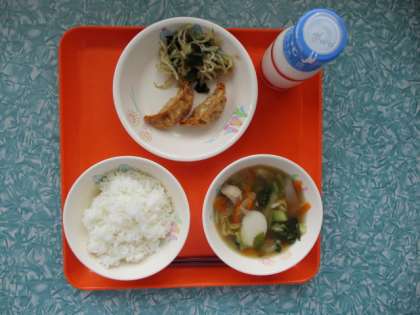 5・11 今日の給食 公開日 2022/05/11 更新日 2022/05/11 食育・給食 ご飯・牛乳・トックスープ・揚げぎょうざ・わかめのナムル わかめは、海で育つ植物の海そうの仲間です。乾燥させることで、長い間保存することができ、古くから日本で食べられてきました。生のわかめは「褐色」といって、赤茶色のような色をしていますが、ゆでるときれいな緑色になります。今日は、お酢を使ったさっぱりした味付けのナムルで登場しました。