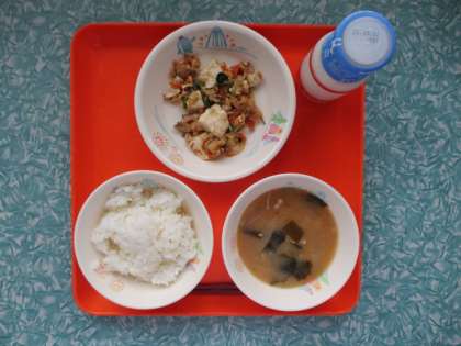 ごはん・牛乳・豚汁・野菜たっぷりいろどりどうふ