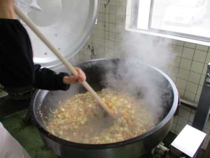 今日の「野菜たっぷりいろどろどうふ」は、尾西第三中学校の生徒が考えた応募献立です。野菜をたくさん食べられるように、色とりどりの野菜を使った献立を考えてくれました。たまねぎ、にんじん、こまつなの野菜と、まいたけ、たまご、ちくわのたくさんの食材が入り、それぞれの食材のうま味が感じられましたね。「ごはんによく合っておいしかった!」という声を聞くことができました。