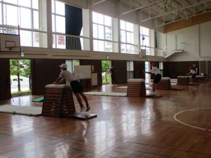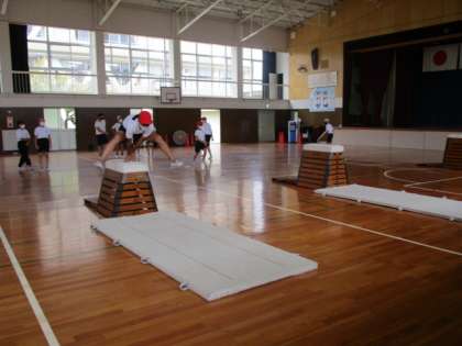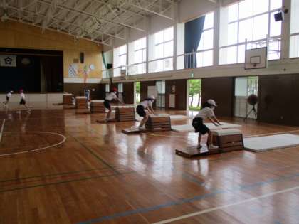 自分に合った高さの跳び箱を選んで、集中して練習に取り組んでいました。