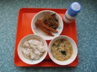 3.16 今日の給食 公開日 2023/03/16 更新日 2023/03/16 食育・給食 ご飯・牛乳・わかめのみそ汁・さわらのごまだれ・おひたし 今日は、「まごわやさしい」献立の日です。体にやさしい、7つの食材が給食に入っていました。みそしるの中の とうふ、わかめ、しめじ、さといも、「さわらのごまだれ」の、さわらとごま、そしてたくさんの野菜が入っていましたね。いろいろな種類の食べ物を、バランスよく含んだ和食の給食は、成長期のみなさんに必要な栄養素をしっかりととることができます。