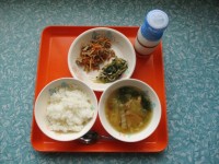 今日の給食は、ご飯・牛乳・ビビンバの具(肉)・ビビンバの具(野菜)・ワンタンスー...