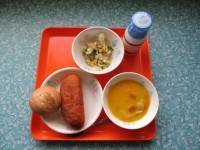 今日の給食は、牛乳・きなこ揚げパン・プチパン(5,6年)・かぼちゃのポタージュ・...