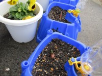 1年生が大切に育てているチューリップの植木鉢から芽が出ているものがありました。校...