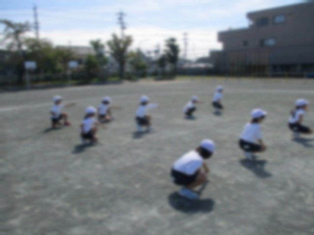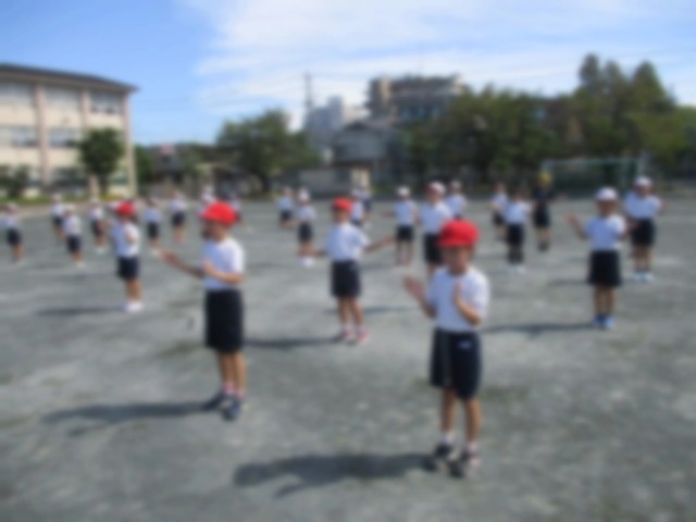 運動会の練習が始まって、1週間が経ちました。音楽に合わせて手を叩いたり、ジャンプしたり、練習に励んでいます。楽しく笑顔でおどろうね!