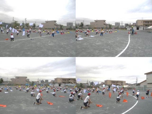 連休があったため、火曜日からの始まりとなりました。今週は少し天気が心配です。運動会の練習が予定されていますが、雨が心配です。6年生は運動場でフラッグの練習です。曲に合わせながら順に動かす練習や一斉に合わせる練習です。