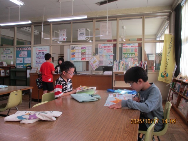 運動会まであと2週間。今日も練習をがんばりました。5時間目はみんなで図書館へ行き、好きな本を読んで楽しみました。今週も大変よくがんばりました。また月曜日、元気に登校してくださいね。