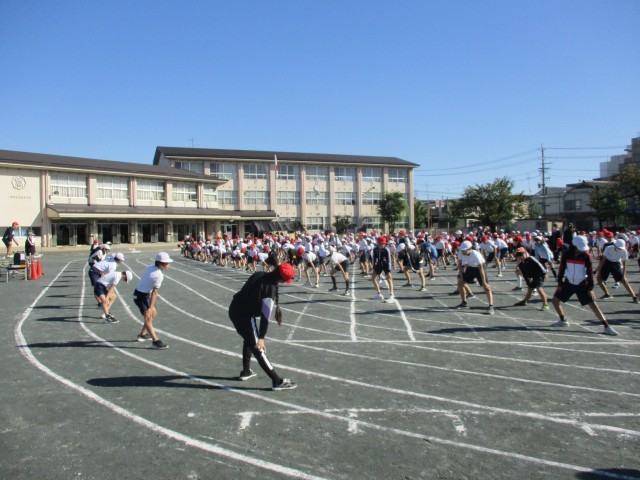 運動会本番に向けて、全校練習を行いました。児童会役員を中心に開会式や閉会式の練習を行いました。また、体育委員会を中心にストレッチ体操の練習も行いました。