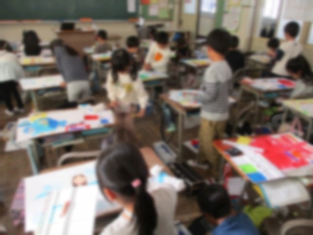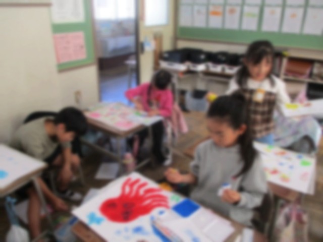 図画工作の授業では、“ふしぎな”たまごからうまれる世界を描きました。動物が幸せに暮らす世界や恐竜の世界など、すてきな世界ばかりでした。