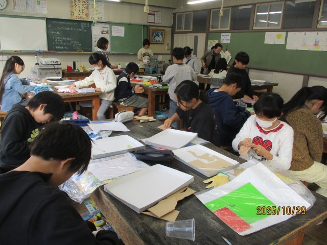 図工では、糸のこぎりを使って木の板を切り、それを組み合わせて作品を作っています。今日は、グループで協力して糸のこぎりの準備をしたり、糸のこぎりを使って木を切ったりしました。どの子も、安全に注意して、積極的に制作に取り組んでいました。「ミシンみたいでおもしろい!」「曲がった線もきれるなんて便利!」といいう感想が聞かれました。
